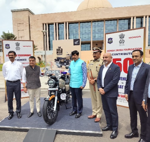 હૉન્ડા ઇન્ડિયા ફાઉન્ડેશન “સડક સહાયક: સુરક્ષિત માર્ગ, સુરક્ષિત જીવન” પ્રોજેક્ટ હેઠળ ગુજરાત પોલીસને 50 કસ્ટમાઇઝ્ડ હૉન્ડા CB350 ક્વિક રિસ્પૉન્સ ટીમ (QRT) વાહનો સોંપે છે