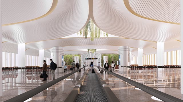 પ્રખ્યાત ઝાહા હદીદ આર્કિટેક્ટ્સ દ્વારા રચાયેલNMIA એક એરપોર્ટ કરતાં ઘણુ બધુ છે.તેમાંહજારો વર્ષોથી ભારતીય સંસ્કૃતિને આકાર આપતા રાષ્ટ્રીય પુષ્પકમળની ભારોભાર છબી ઉપસી રહીછે. લંડન સ્થિત કંપનીએ એક ટર્મિનલ બનાવ્યું છે જે ભારતના સમૃદ્ધ સાંસ્કૃતિક વારસા સાથે બોલ્ડ એન્જિનિયરિંગને એકીકૃત રીતે મિશ્રિત કરે છે. કેન્દ્રીય એક શાંત કમળ તળાવ જેવું લાગે છે, જ્યારે કોનકોર્સની રેડિયલ ગોઠવણી પાંખડીઓને સુંદર રીતે બહાર ફેલાવે છે. કમળના પાંદડાઓથી પ્રેરિત કાચના રવેશ અને જાળીકામ, છાંયો અને વેન્ટિલેશન પ્રદાન કરતી વખતે કુદરતી પ્રકાશને ફિલ્ટર કરે છે.