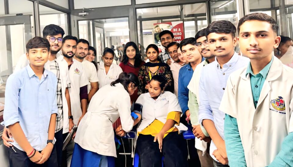 ગુજરાત, અમદાવાદ ૧૩ જૂન ૨૦૨૫: તારીખ 12/06/25 ના રોજ અમદાવાદમાં થયેલ પ્લેન ક્રેશમાં ઘાયલ થયેલા દર્દીઓ માટે બ્લડની વ્યવસ્થા કરવાના ઉમદા હેતુથી સ્વામીનારાયણ મેડિકલ કોલેજના મેડિકલ સ્ટુડન્ટ્સ તથા કોમ્યુનિટી મેડિસિન વિભાગ દ્વારા તાત્કાલિક ધોરણે બ્લડ ડોનેશન કેમ્પનું આયોજન કરવામાં આવેલ.