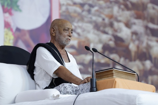 સંત એ કથાની શોભા છે એવું કહેતા બરસાનાધામથીચોથા દિવસની કથાનો આરંભ કરીને બાપુએ કહ્યું કે કથા,સંત અને ઈશ્વર તરફ શ્રદ્ધા વિશે મારા દાદા વિષ્ણુ દેવાનંદગિરિજી કહેતા કે:શ્રદ્ધા ઉપાય નહીં ઉપલબ્ધિ છે.શ્રદ્ધા ઉપલબ્ધ થઈ જાય તો જ્ઞાનની પ્રાપ્તિ એ જ ક્ષણે થઈ જાય છે એવું ગીતાજીમાંલખેછે.ગીતાજી કહે છે શ્રદ્ધાવાન લભતેજ્ઞાનમ…એટલે પુરુષ શ્રદ્ધામય હોય તો ધર્મ પોતાની રીતે જ રોમ-રોમમાં આસન લગાવી દે છે.