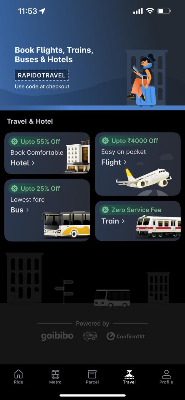 હવે રેપિડો એપમાં યુઝર્સને હોમ સ્ક્રીન પર એક નવો “ટ્રાવેલ” સેક્શન મળશે. અહીં ફ્લાઇટ, હોટેલ, બસ અથવા ટ્રેનમાંથી કોઈ પણ વિકલ્પ પસંદ કરતાં જ, યુઝર્સ રેપિડોના પાર્ટનર્સ દ્વારા તૈયાર કરાયેલા સુરક્ષિત અને સરળ બુકિંગ ઇન્ટરફેસ પર પહોંચી જશે.